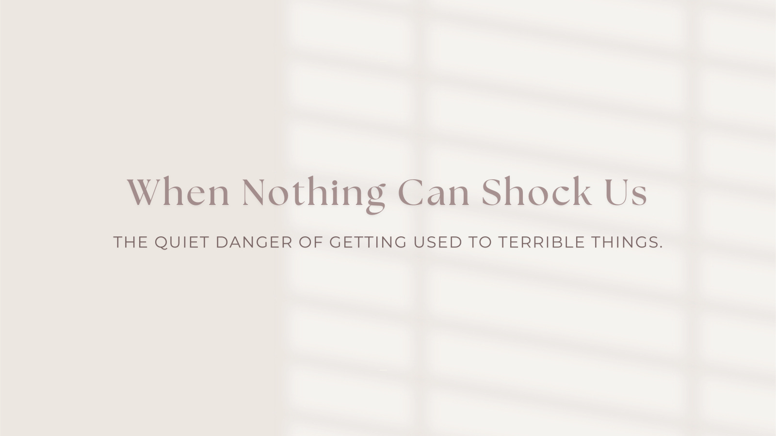 The quiet danger of getting used to terrible things.